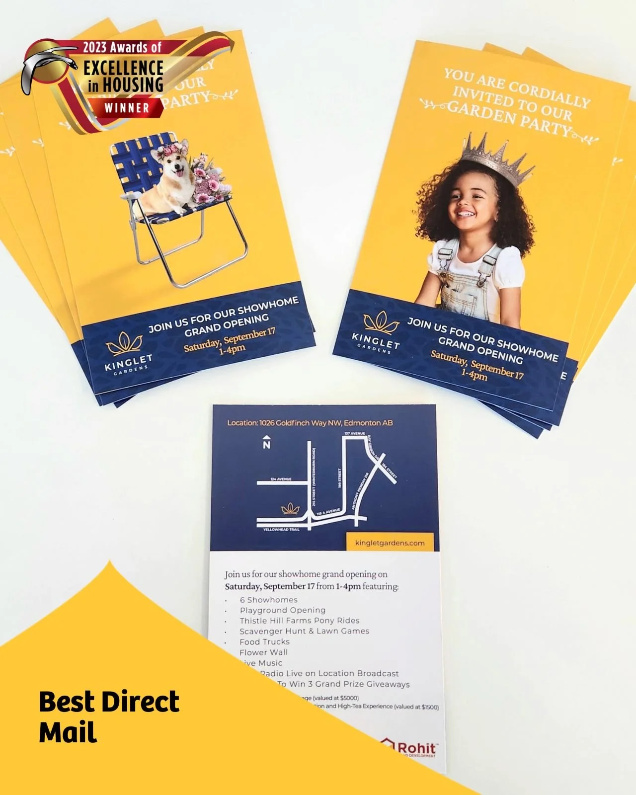 Collaborated on concept development, copy, and design for direct mail to promote a showhome grand opening.